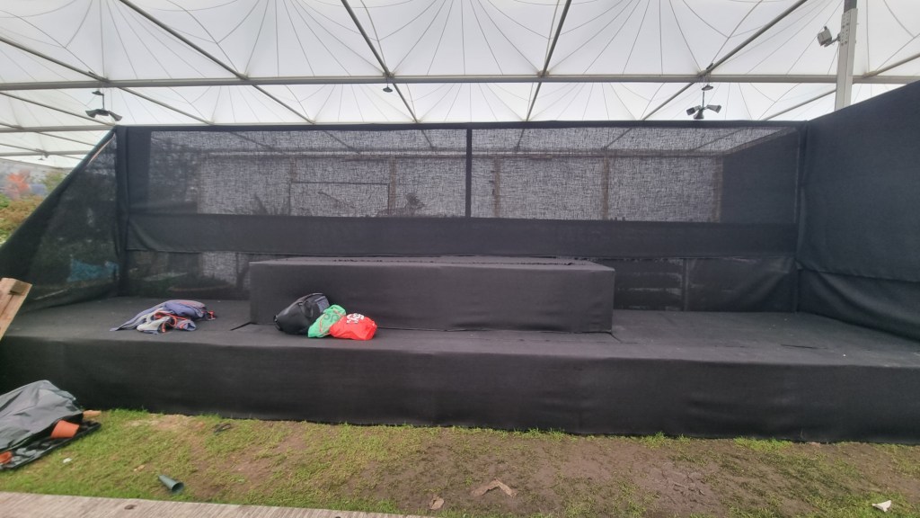 This part of the journey could have been like one of those T.V title sequences from the 90’s, we had members travelling down in the van, in a car and on a train! The van set off at 4am with Simon and Colin in, Frances and Ray drove down in the car at 5am, and I caught the train at 6am (with thanks to Carolyn for dropping me off at Crewe!). The plan was for me to arrive first, check that everything with the staging was correct, passes were ok etc, then the rest of them arrive around the same time and we begin.