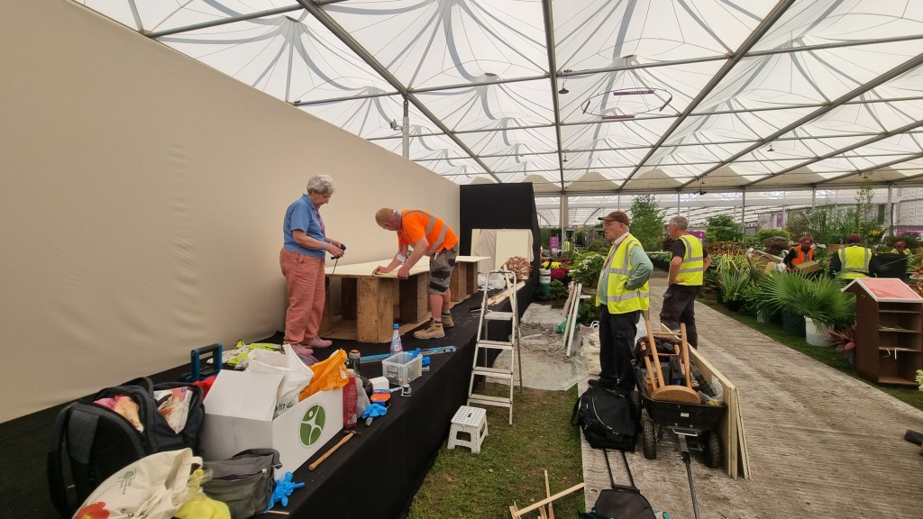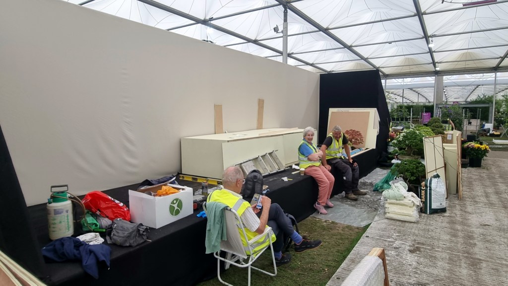 We had two days to build the display. Just as we do at Tatton, but the pressure was on to get it right. On Sunday, Simon and Colin walked to the showground extra early to make a start while those of us who aren’t natural morning people got up at a more civil time and drove in.