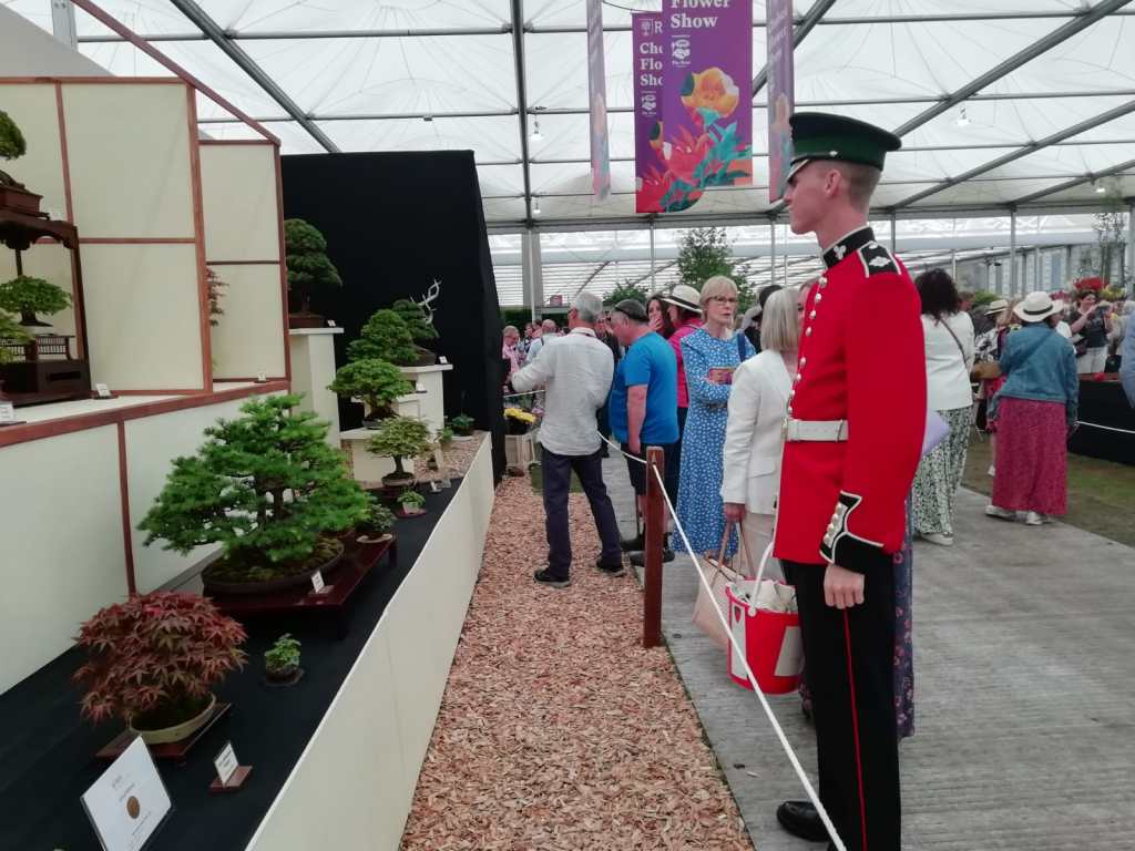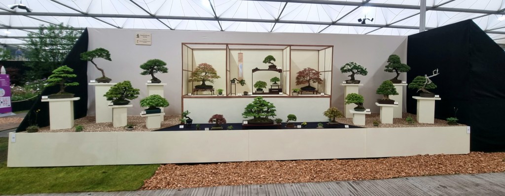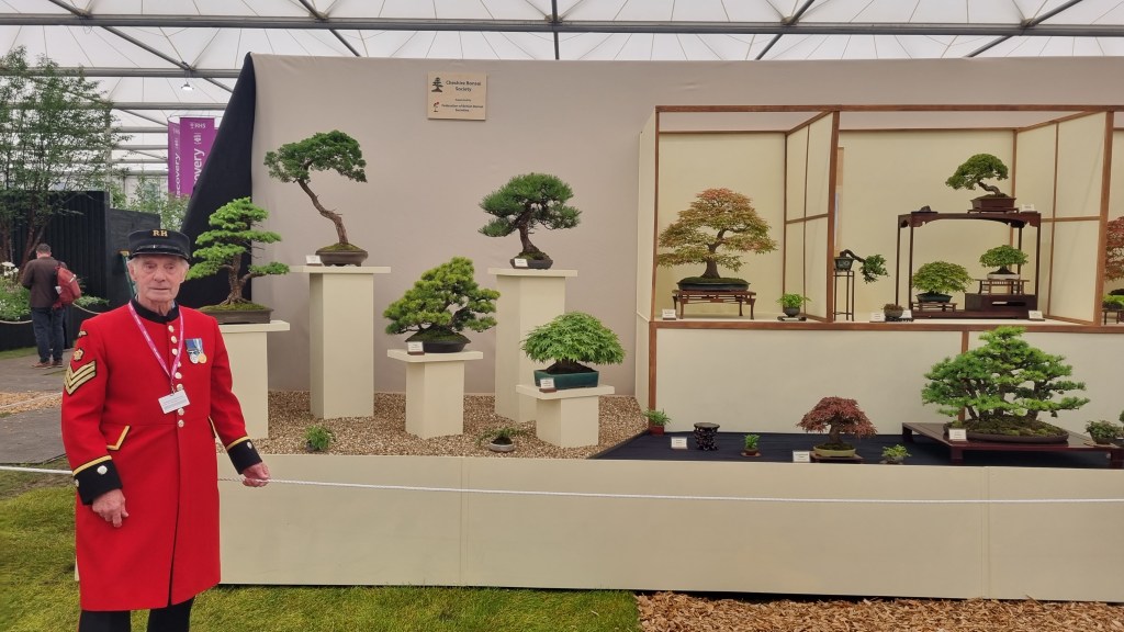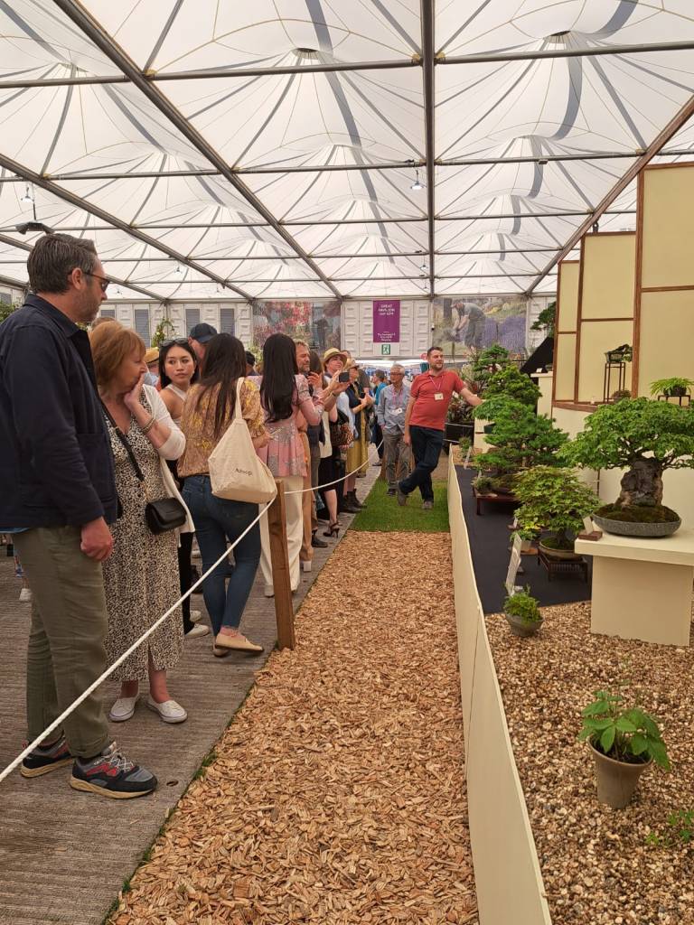This is a good opportunity to introduce a few more of our key members. Phil Coombs is our resident Bonsai trader, if you need pots, tools, wire, trees et al, Phil is the one to see. Robert Antonio is a long standing and much loved member of the society, he is very knowledgeable on Bonsai and has been growing them for decades. Bob supplies a large percentage of the trees we take to shows and is one of the most helpful people you could ask for at the meetings. Tom Armstrong – Mortlock is the newest member of the committee, joining to help handle the Chelsea work load, he has recently taken over handling the club show. Anyway, back to Chelsea!