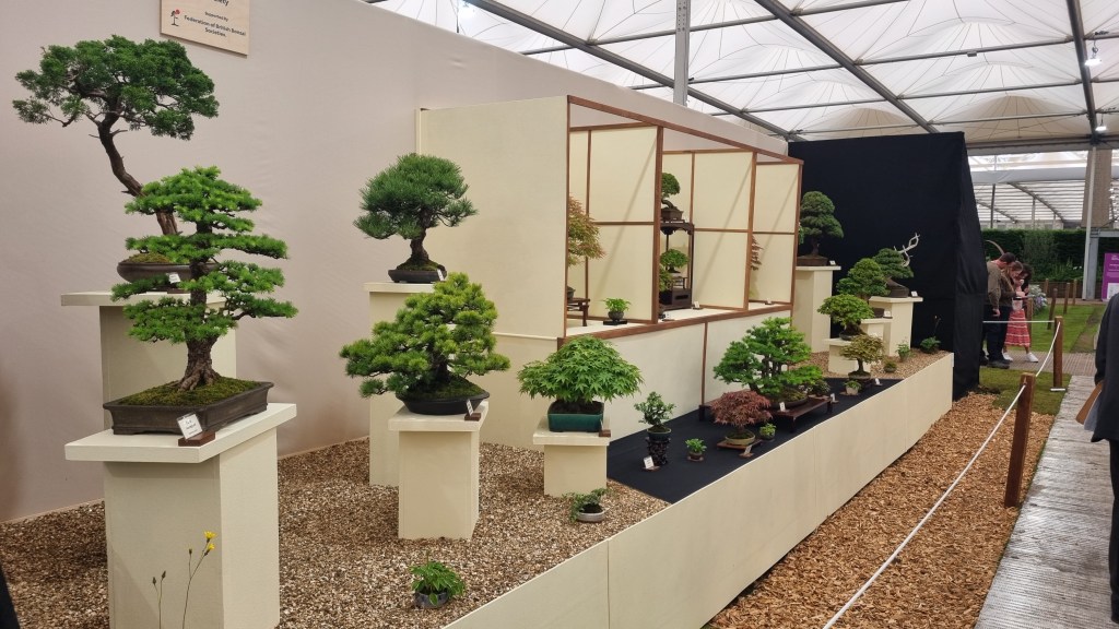 Throughout the week, the public expressed a huge level of interest in our display, they absolutely loved Bob’s Larch on the front left of the display and the Maples will always be a big hitter. Members fielded the usual array of questions, how old are they? how much are they? are they easy to look after? I had a Bonsai once but it died, what did I do wrong? etc.